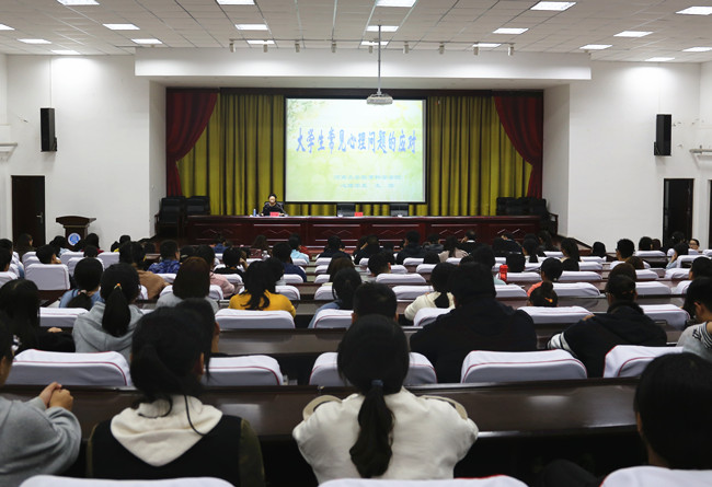 本次讲座由河南大学教育科学学院心理系王滨教授主讲。王教授从多个角度、深层次的分析了大学生中存在的心理问题,并结合自己丰富的临床经验,通过大量的数据和案例从一般心理问题、心理障碍、心理疾病、精神障碍及各种心理问题的甄别、应对和处理等方面,深入浅出地对大学生心理健康问题进行了详细讲解。
