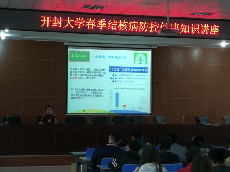 刘老师讲解了2018年结核病最新疫情以及结核病防治的规范方案,艾滋病感染预防知识和高校艾滋病疫情通报。刘老师还结合近年的传染病发病情况以及学校特点,重点讲述了校园结核病和艾滋病的预防工作方案,要求同学们提高防控意识,加强预防措施,谨防传染病的校园传播。