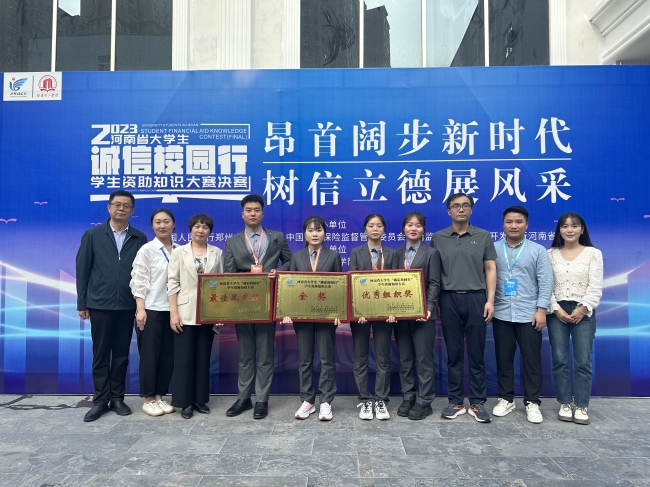 本站讯 5月29日—6月1日,河南省大学生“诚信校园行”学生资助知识大赛总决赛在南阳理工学院落下帷幕,我校在大赛中荣获金奖、最佳风采奖和优秀组织奖。校党委委员、工会主席成芳带领学生资助管理中心及相关院部负责人共同到场观看比赛并领奖。