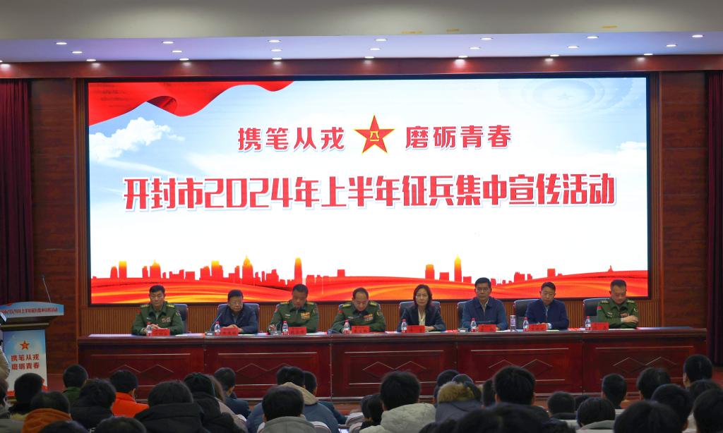 本站讯 12月28日下午,开封市2024年上半年征兵集中宣传活动在我校行政楼第一会议厅举行。开封军分区大校司令员朱宝红,校党委书记谭贞,市政府副市长袁钢,军分区大校副司令员、市征兵办公室主任魏家伟,市教育体育局二级调研员王晓波,副校长万是明,军分区动员处上校处长、市征兵办公室副主任刘磊,军分区政治工作处上校主任江同山出席活动。开封市城区各人武部主官,开封各高校征兵工作站站长,我校师生代表参加活动。活动由魏家伟主持。