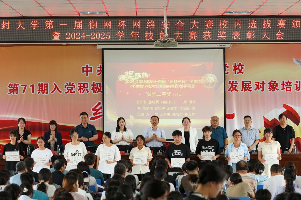 本站讯 6月12日下午,信息工程学院(软件职业技术学院)在8号楼六楼报告厅举行第一届御网杯网络安全大赛校内选拔赛颁奖典礼暨信息工程学院2024-2025学年技能大赛获奖表彰大会。我校副校长李治、教务处处长王茜、学院领导班子及企业嘉宾出席了本次表彰大会,会议由学院数学教研部主任赵展主持。