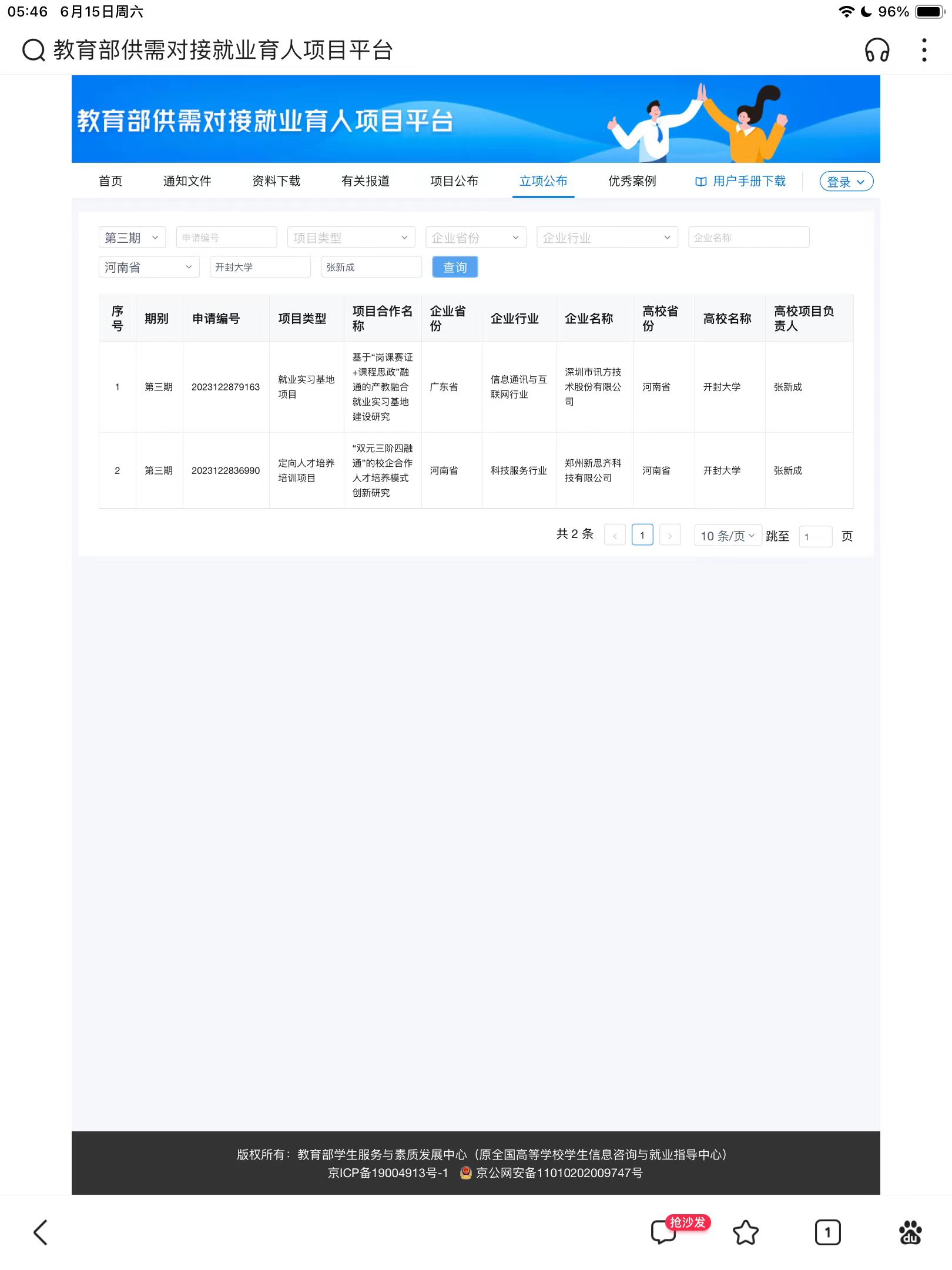 本站讯 6月14日,教育部高校学生司发布了《关于公布第三期供需对接就业育人项目立项名单的通知》(教就业司函〔2024〕23号),公布的立项名单中,我校信息工程学院与相关企业联合申报的2个项目获得立项。其中,与深圳市讯方技术股份有限公司联合申报的就业实习基地项目1项,与郑州新思齐科技有限公司联合申报的定向人才培养项目1项。