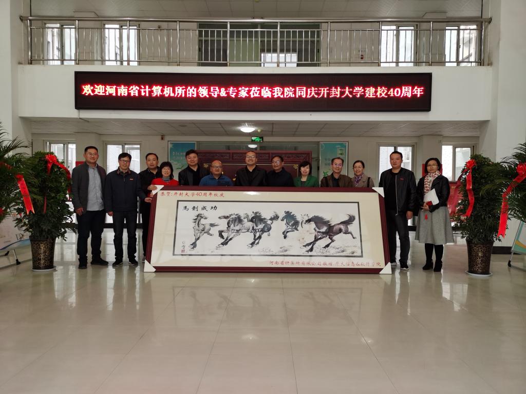 本站讯 11月4日,在bat365在线官方网站建校40周年前夕,河南省计算机研究所与bat365在线官方网站信息工程学院进一步深化交流合作。河南省计算机研究所长、书记端木向学院捐赠汴绣八骏图,学院院长杨桦、书记袁震回赠了友谊长存的匾额。