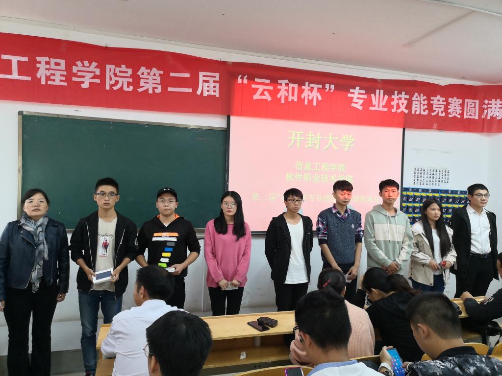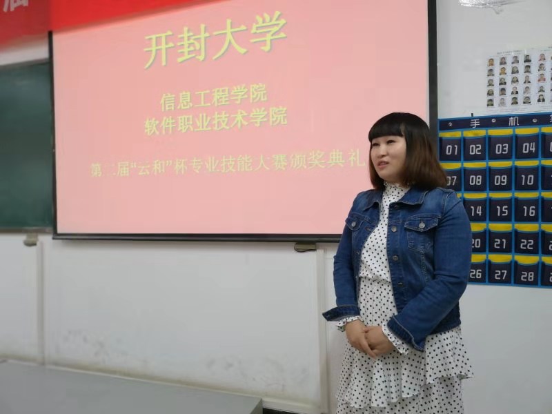 本站讯 10月11日下午,信息工程学院、软件职业技术学院在3号楼401教室隆重举行第二届“云和杯”专业技能大赛总结暨颁奖典礼。此次大赛由云和数据有限公司、信息工程学院和软件职业技术学院共同主办。参加颁奖典礼的有云和数据公司营销经理豆雪慈、学院党总支副书记高剑南、副院长李响、各专业教研室主任及学院120余名学生。