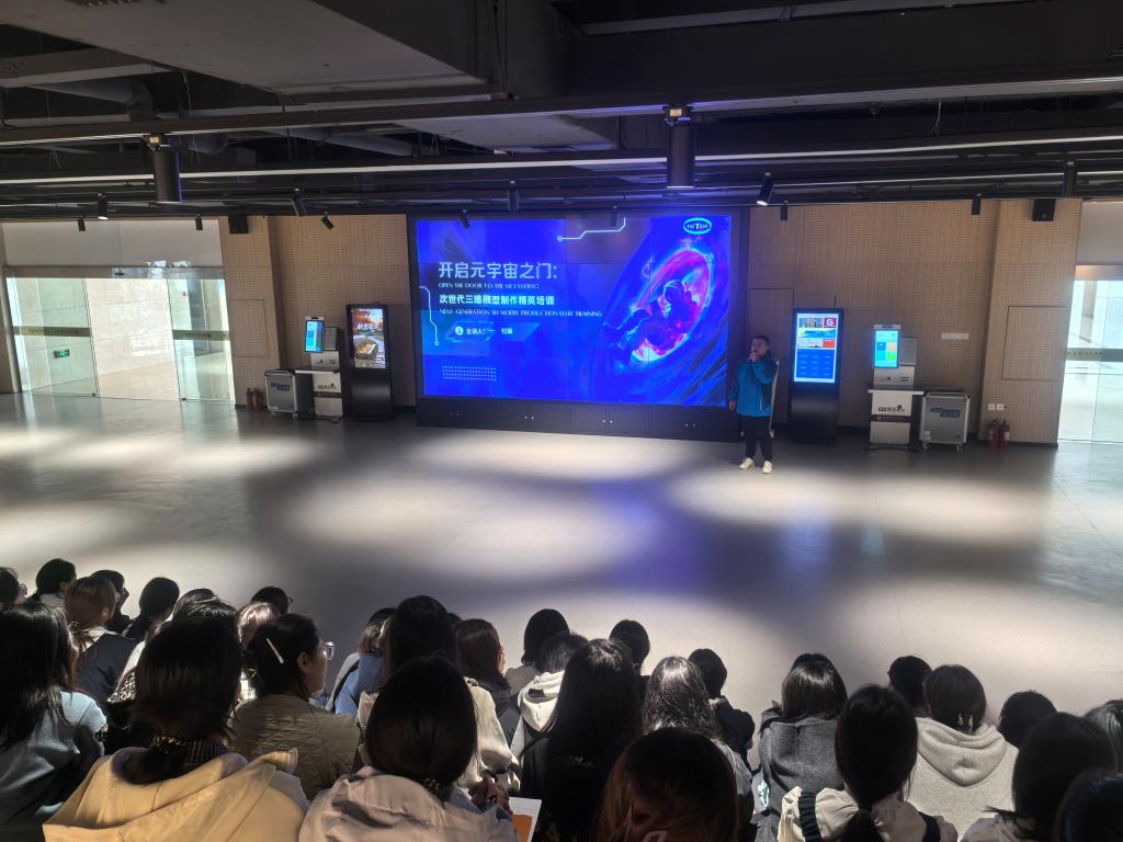 工程师付晨结合影视特效、游戏开发、虚拟现实等数字媒体领域的经典案例,详细讲解了三维建模从需求分析、概念设计到中高低模型创建,再到贴图制作,最后渲染输出的企业标准化流程。他强调,企业级建模规范不仅关乎作品质量,更直接影响制作效率与成本控制。工程师企业已落地的数字产品——纳米微观元宇宙实验室,为师生打开了技术应用的新视野。