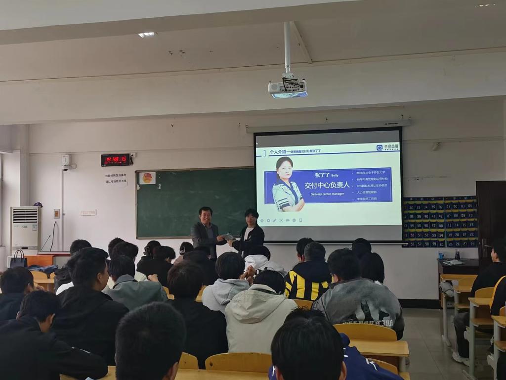 李红礼在宣讲会之前,代表学院向北京奇易企业管理有限公司表示热烈欢迎,并鼓励同学们以“先就业再择业”的就业方式,开启自己的实习和就业阶段。宣讲会上,公司负责人向同学介绍公司文化、企业发展方以及工作内容等方面,并与同学们进行了热烈的互动,解答同学们提出的各种问题,会后有意向的同学又与企业方的工作人员进行了深入交流。