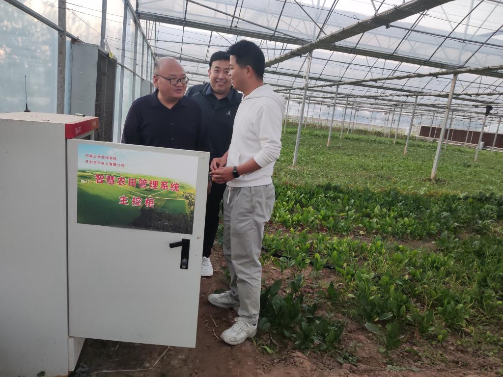 在开封市国家文化出口基地双创园,数字化沉浸交互式艺术产品展示中心,深入了解了各类智慧物联应用场景,与企业在探索校企合作共同研发元宇宙双创产品方面达成共识。随后,张院长一行来到位于河南大学科创中心的河南众知物科技有限公司进行参观走访,河南大学智慧网络研究院院长韩志杰详细介绍了团队在农业物联网、智能网卡等方面的研究成果及应用,实地参观了高标准农田智慧大棚的设施装备展示。在座谈中,双方初步明确了校企合作意向。张院长表示,学院始终把学生就业工作放到首位,坚持以就业为导向的人才培养模式,希望双方充分发挥各自优势,实现校企协同育人。