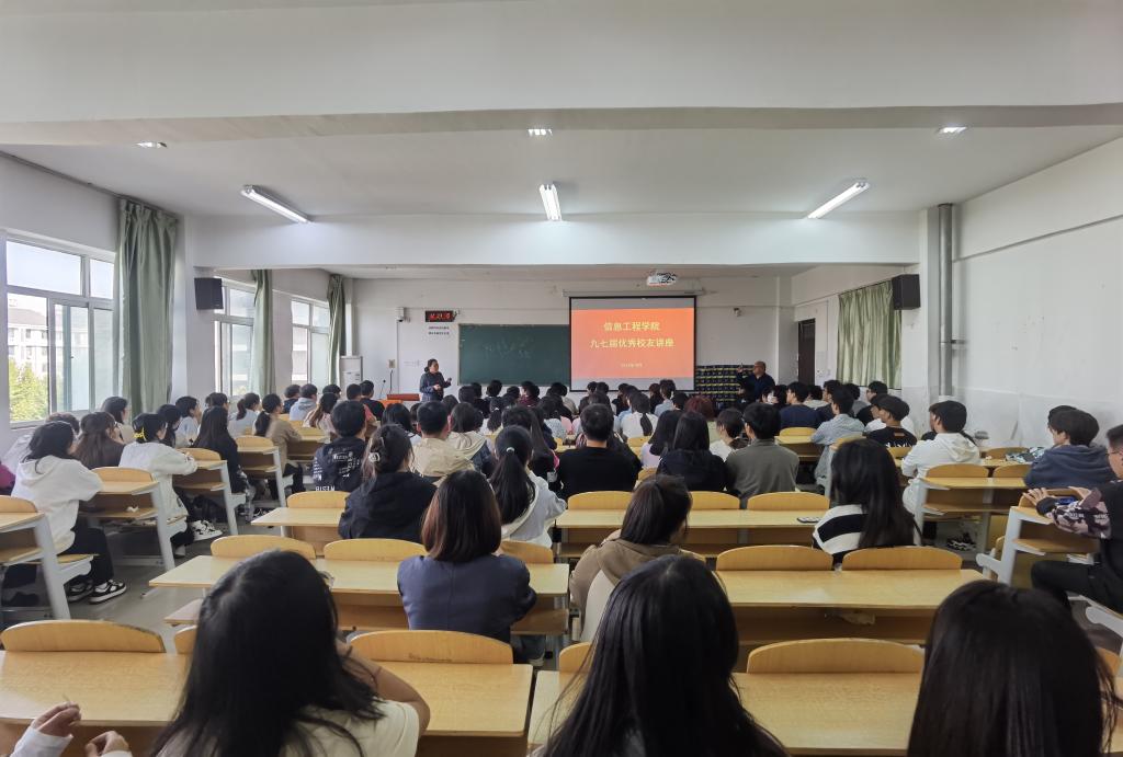 本站讯 10月25日中午,信息工程学院优秀校友、深圳市宇星鸿精密科技有限公司负责人陈艳霞到校招聘并开展讲座。信息工程学院院长张新成、校就业与校企合作处副处长王亚辉、信息工程学院就业和校企合作工作负责人以及100多名学生在3号楼402教室参加讲座及专场招聘会。