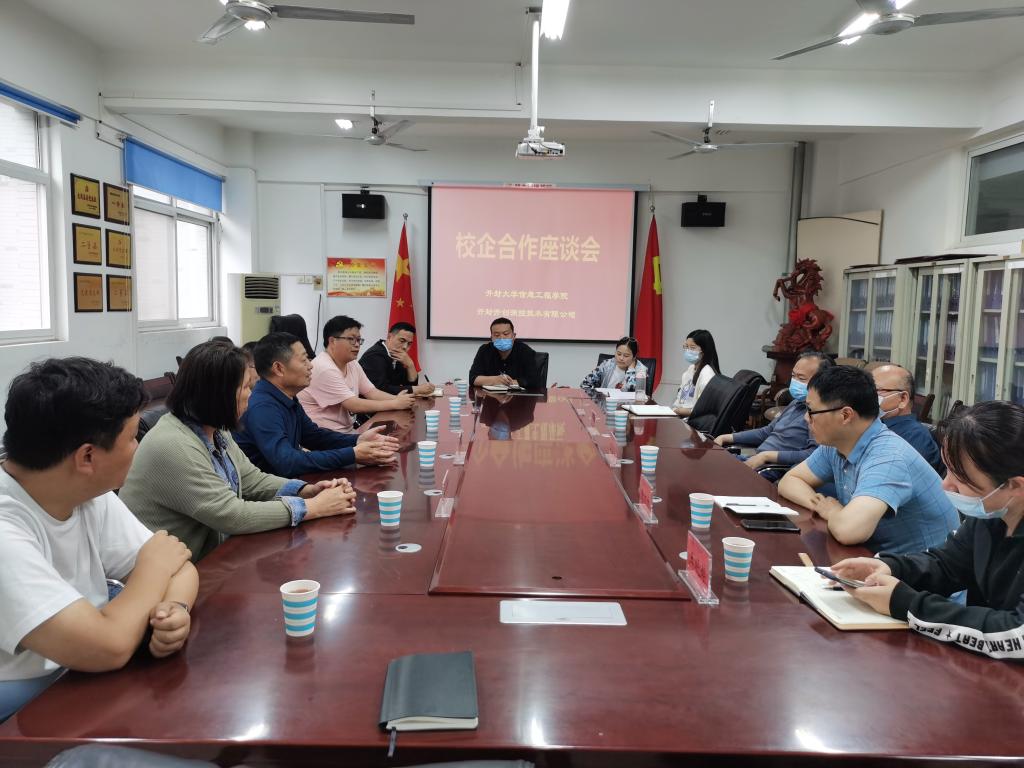 本站讯 5月25日下午,信息工程学院与开封开创测控技术有限公司在3#312学院会议室开展了深度校企合作研讨会。开封开创测控技术有限公司总经理贾洪名一行六人、信息工程学院院长张新成、学校督导室督导肖兴达老师、信息化管理中心副主任张才千和学院的部分骨干教师参加了此次研讨会。