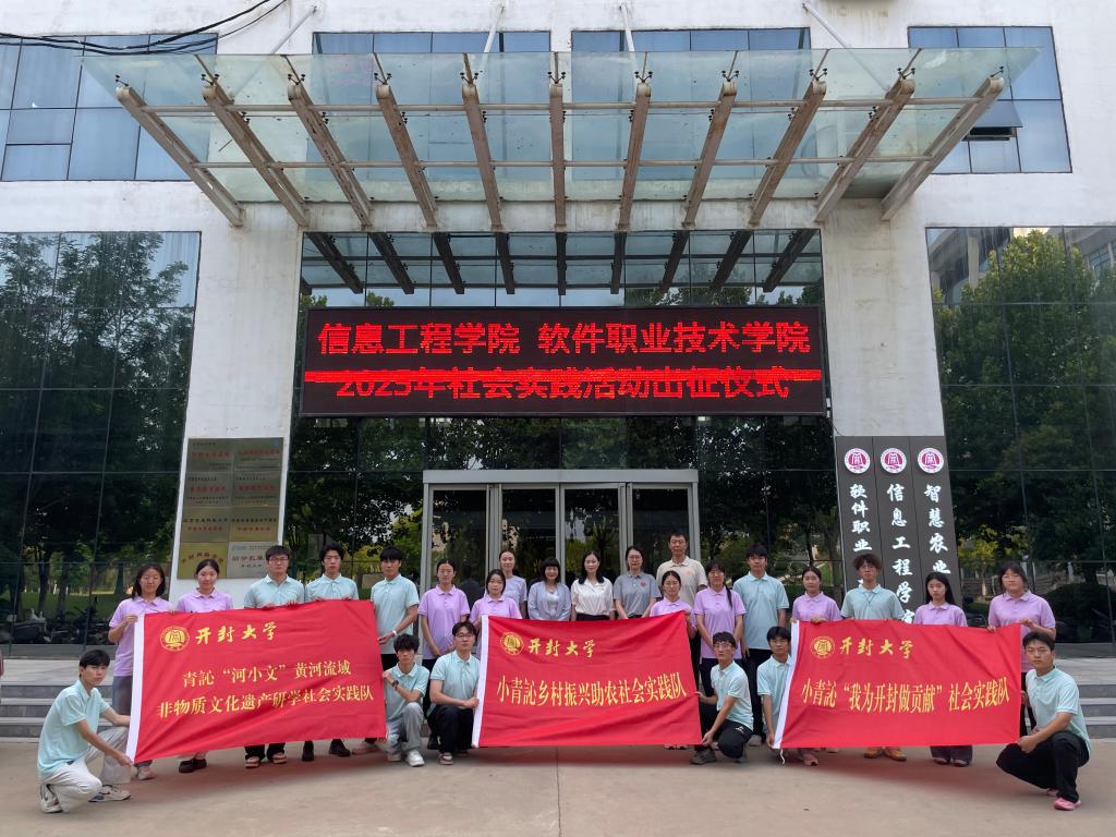 本站讯 为深入学习贯彻党的二十大和二十届二中、三中全会精神,落实习近平总书记关于青年学生成长成才的重要指示精神,按照团省委和学校团委关于开展2025年暑期社会实践活动的要求,信息工程学院(软件职业技术学院)组建了青訫“河小文”黄河流域非物质文化遗产研学、小青訫乡村振兴助农、小青訫“我为开封做贡献”三支社会实践队,围绕保护传承非物质文化遗产、助农乡村振兴和基层治理三个主题,于7月10日至17日在开封市城乡一体化示范区、顺河回族区等地集中开展暑期社会实践活动。
