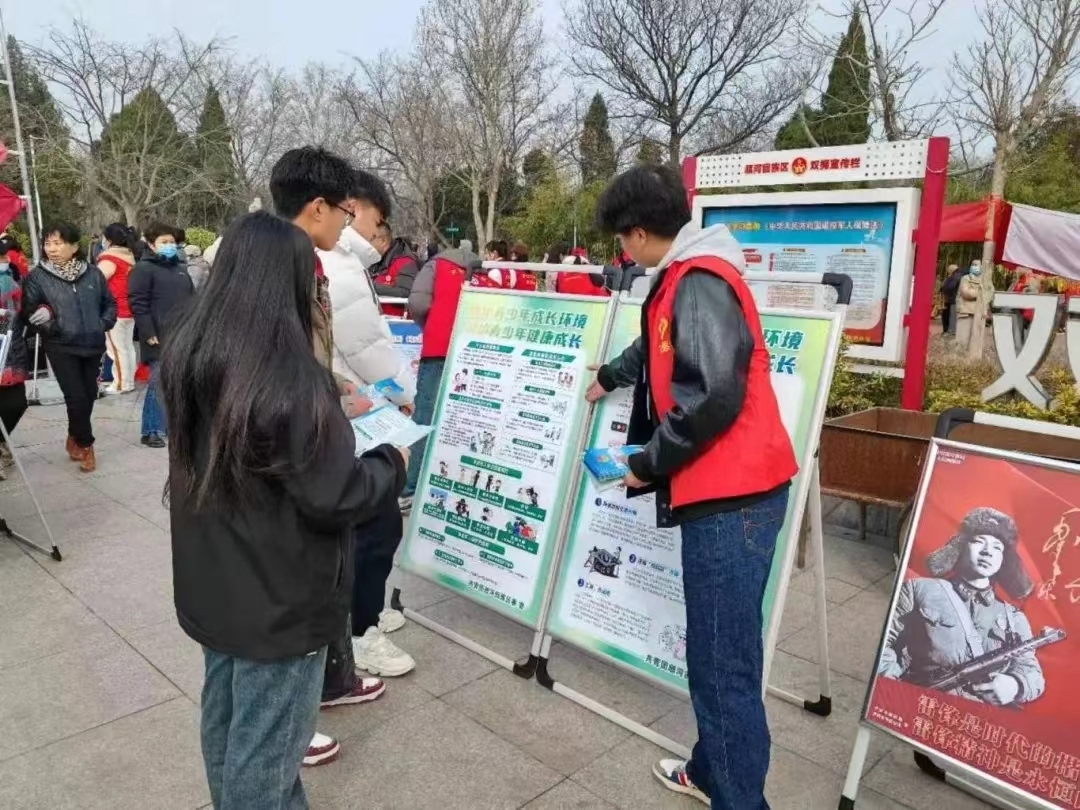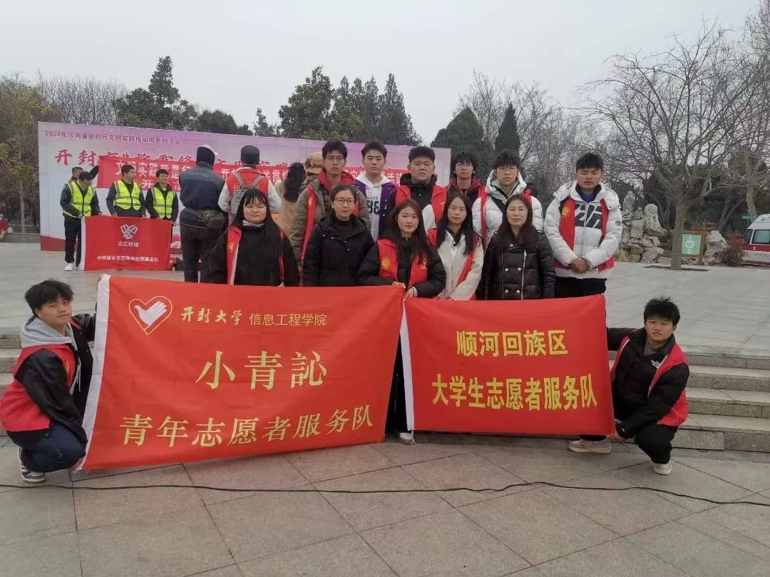 本站讯 在第61个学雷锋纪念日之际,3月5日,信息工程学院“小青訫”青年志愿者服务队联合团顺河回族区委参加了开封市“学雷锋 文明实践 我行动”主题活动启动仪式。仪式后,志愿者们先后开展了“青少年安全”宣传教育活动,“文明环保 绿色兑换”和“河小青”志愿服务活动。
