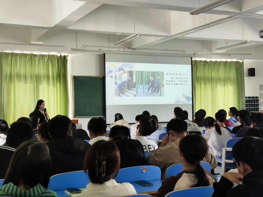 活动中,刘畅老师围绕“青春期的恋爱”这一主题向同学们讲解恋爱是什么、大学期间如何处理恋爱与学习之间的关系、什么样的恋爱才是健康的等方面的内容。在讲解过程中还与同学们围绕“你心目中的理想爱情是什么?”等话题进行了互动,同学们结合刘老师的讲解,同学们主动的讲了自己的想法和看法,活动在师生欢快的交流中结束。
