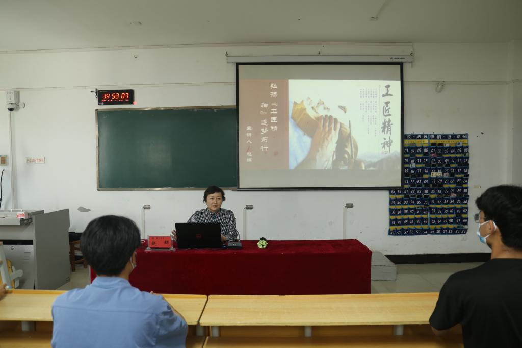 赵校长以“弘扬‘工匠精神’逐梦前行”为主题,详细向同学们讲述了工匠精神的内涵、弘扬新时代工匠精神、弘扬工匠精神的意义以及如何弘扬和培养工匠精神四部分内容,以龙芯之父胡伟武、年画大师任鹤林、高级磨工李淑团为例,讲述了大力弘扬工匠精神,培养更多高素质技术技能人才、能工巧匠、大国工匠对于全面建设社会主义现代化国家、实现中华民族伟大复兴的中国梦的重要性,鼓励同学们积极弘扬和培养工匠精神,爱岗敬业、开拓创新、精益求精、薪火相传,同时,赵校长还对同学们提出了殷切地祝福和希望,鼓励同学们认真学习好专业知识,发展专业能力,不断进步,不断完善。