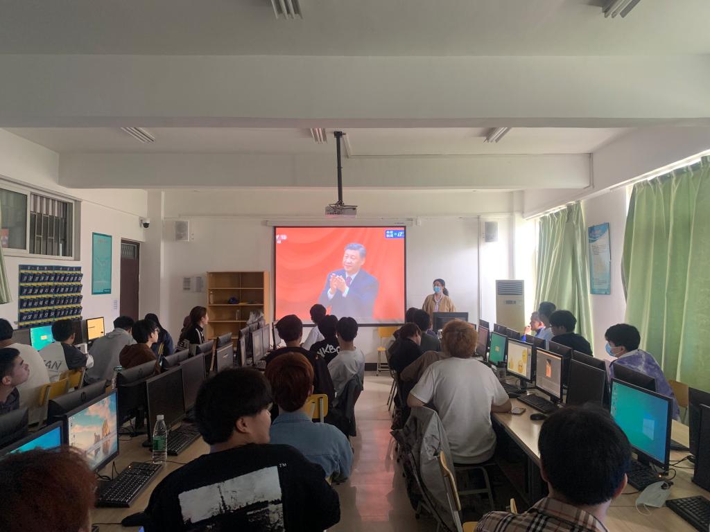 上午10点,师生们分别在信息学院312会议室、学院教室和思政课堂等地分别聆听了习近平总书记在大会上的重要讲话。大会直播结束后,学院团总支书记贺钰老师组织学院青年团干代表进行了座谈。他说,作为学校基层团组织的学生干部,要认真领会和贯彻习近平总书记关于“共青团组织要增强引领力、组织力、服务力,带领广大团员青年成为有理想、有担当、能吃苦、肯奋斗的新时代好青年”的嘱托,在学校党委的领导和学院党总支的指导下,发挥生力军作用,引导学院青年学子努力奋斗,成为一名可堪大用的新时代社会主义合格接班人。