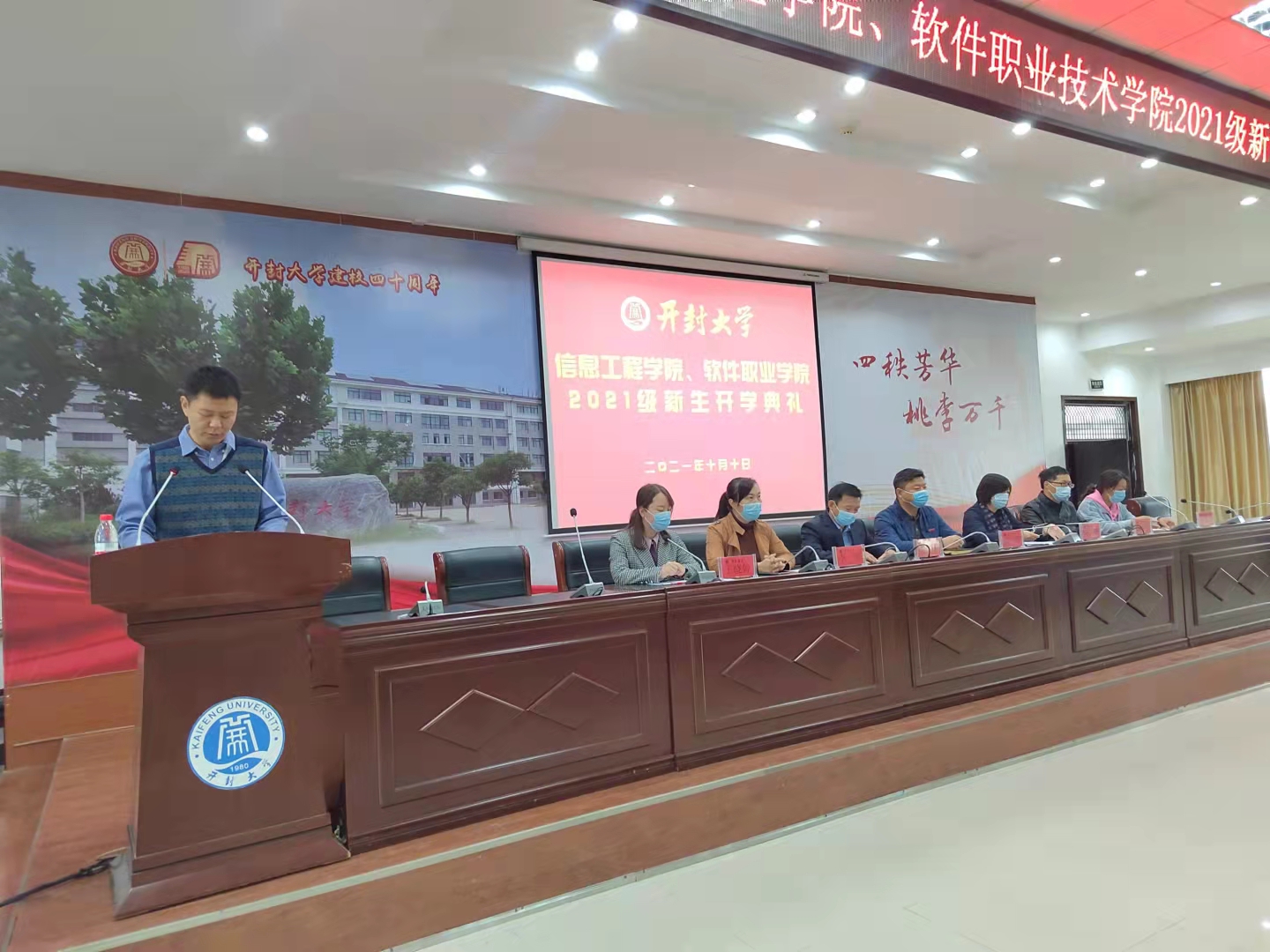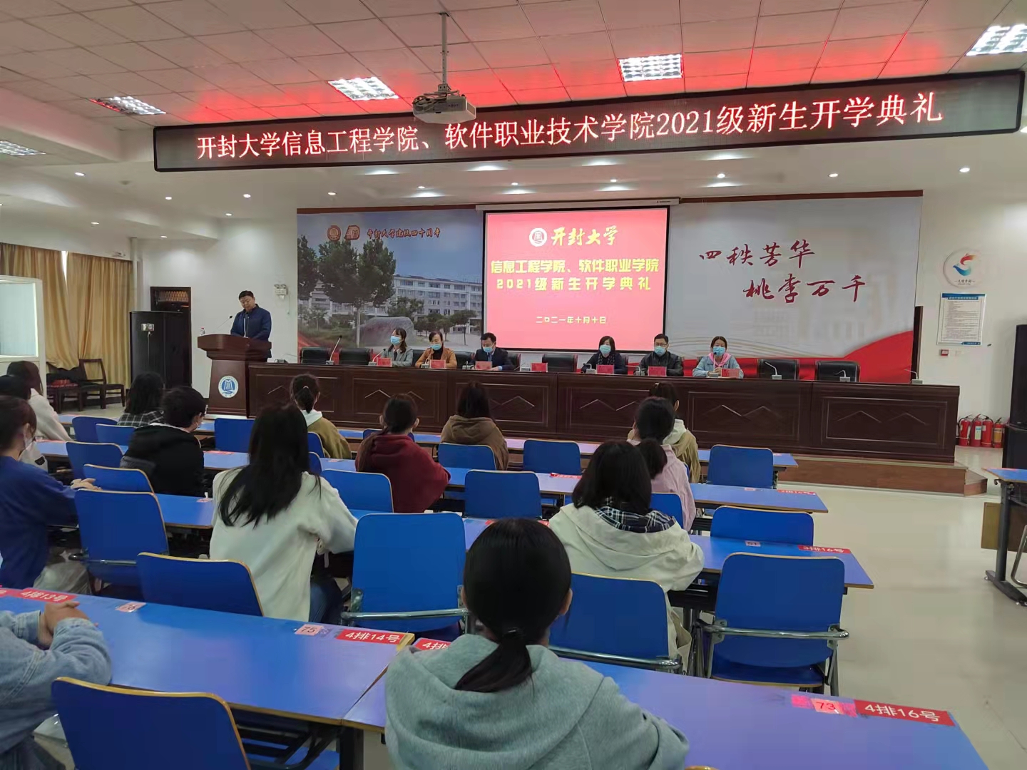 本站讯 2021年10月10日上午,信息工程学院、软件职业技术学院2021级新生开学典礼采取主分会场线上直播的形式隆重举行。