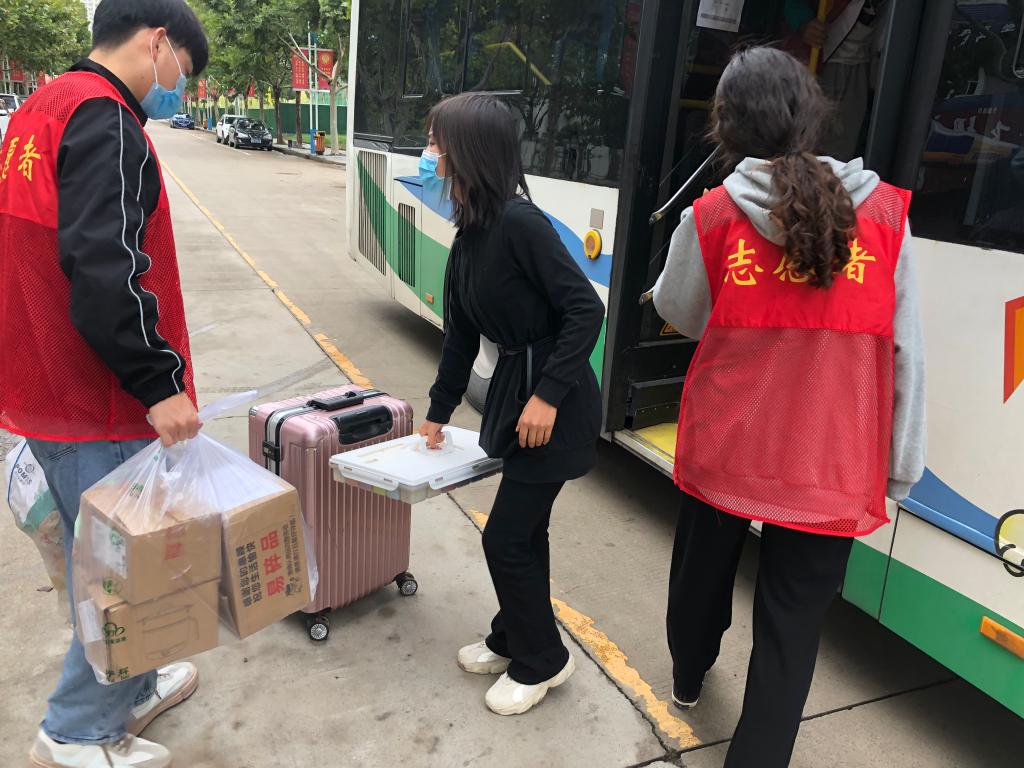 返校当天早晨,经过凌晨大暴雨的洗刷,校园内部分地段有不同程度的积水。“小青訫”青年志愿者们,主动担当积极作为,主动承担了校园“摆渡车”的秩序维持工作,引导返校同学们,有序登车,在积水较深的宿舍楼区域有序下车,帮助同学们在登车和下车时搬运行李,使“摆渡车”校园内的运行更加顺畅,成为了校园里一道靓丽的风景线。在两天志愿服务中,“小青訫”青年志愿者们用实际行动奉献友爱、互助、进步的志愿者精神。