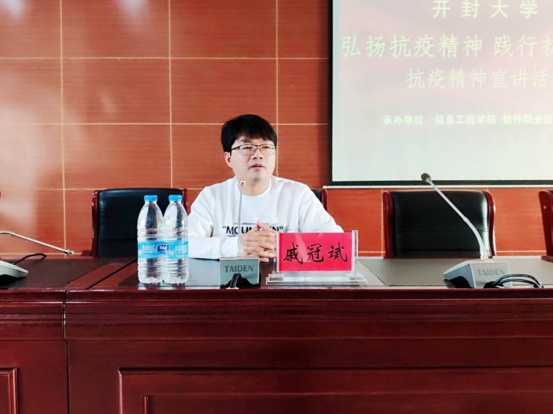 本站讯 10月29日下午,由学工部主办,信息工程学院、软件职业技术学院承办的“弘扬抗疫精神 践行初心使命”抗疫精神报告会在土木六楼会议厅举行。河南大学淮河医院事业发展部副主任李国杰、盖颖;河南省呼吸与危重症学会呼吸治疗分会青年委员、开封市重症医学会委员、河南首批援鄂医疗队队员、河南大学淮河医院主治医师戚冠斌;校党委副书记储建新,党委委员、组织统战部部长赵海胜,学生工作部部长孙勇出席了宣讲活动。各院部师生代表参加了宣讲活动。