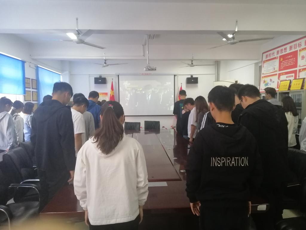 本站讯 9月30日是国家设立的第七个烈士纪念日,今天我们以国家的名义纪念人民英雄。上午十时,中共中央总书记、国家主席、中央军委主席习近平等党和国家领导人同各界代表一起在天安门广场向人民英雄敬献花篮。信息工程学院团总支组织学院青年党员、团学干部、青年学生代表在学院会议室观看了敬献花篮仪式。