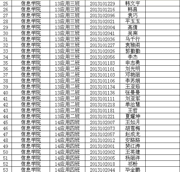 信息工程学院2014年助学金评选拟公示名单