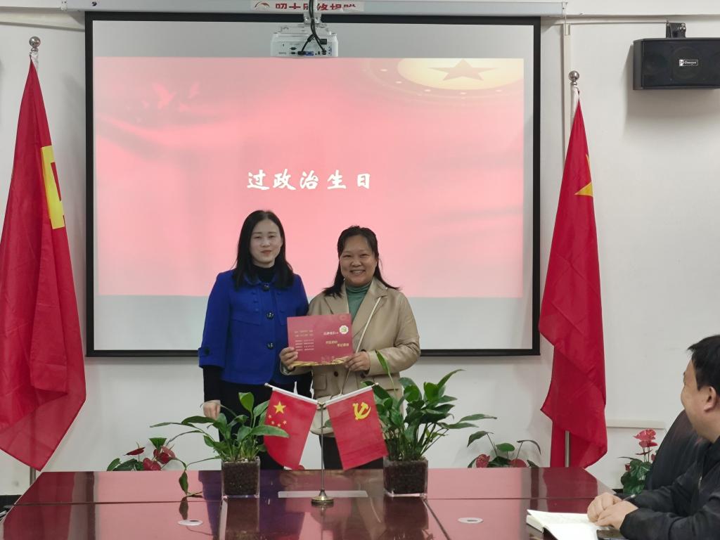 随后,武莹为本月过政治生日的李静老师送上生日贺卡,传递党组织的关怀与温暖。李静回忆了2005年入党时的激动心情,20年过去了,那份澎湃的热忱从未冷却,反而在岁月的磨砺中愈发炽热深沉。