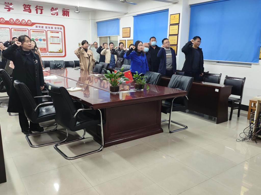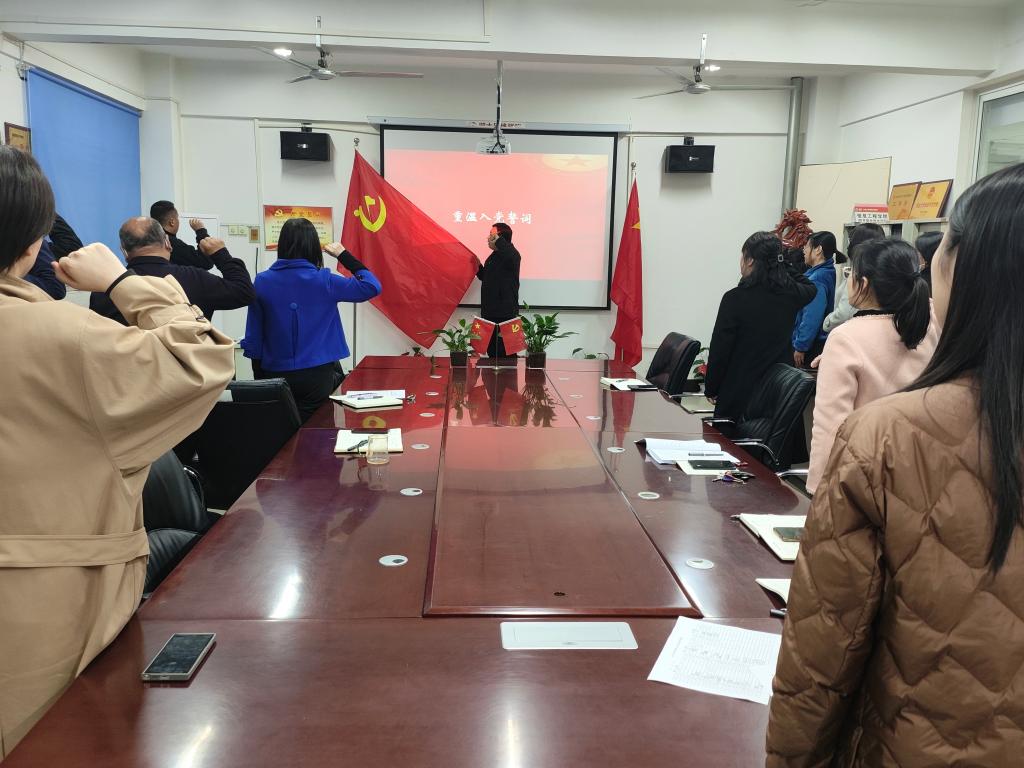 活动在庄重严肃的氛围中拉开帷幕,李林带领全体党员高举右拳,面向党旗庄严宣誓,重温入党誓词。