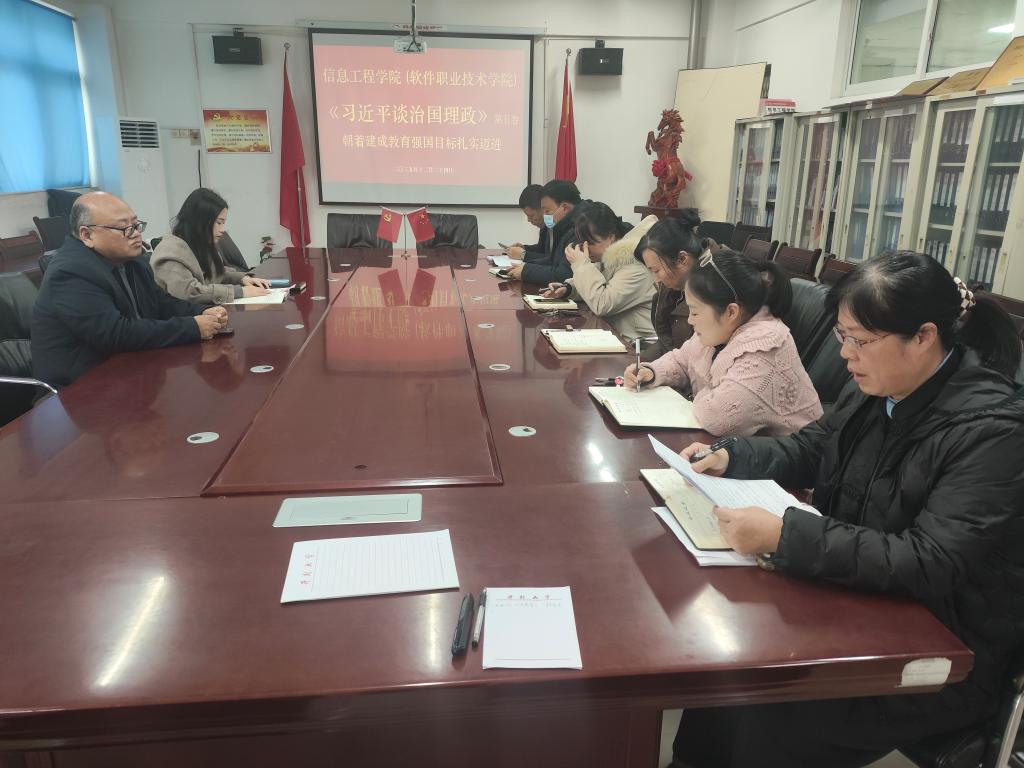 本站讯 12月24日,信息工程学院党总支于3号楼312会议室召开政治理论学习会议,党总支委员及各支部书记参会。会议由党总支书记武莹主持。
