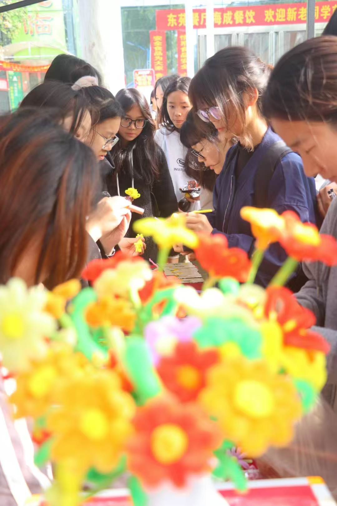 本次活动内容丰富多样,吸引了众多同学参与。在用菊花元素制作书签环节,同学们发挥创意,将菊花的美丽与书香完美结合,制作出独一无二的书签。扭扭棒菊花制作则充满趣味,大家用灵巧的双手塑造出一朵朵栩栩如生的菊花。菊花文化分享环节,同学们深入了解了菊花的历史和文化内涵,感受其高洁品质。而爱的礼物赠送,更是将温暖与关爱传递给每一个人。