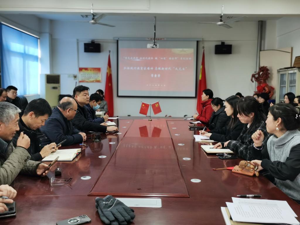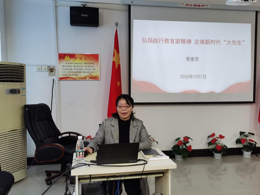 37日下午,信息工程学院全体教师在院会议室参加了主题党日系列活动启动仪式。首先,院党总支书记袁震从活动开展的意义讲起,习近平总书记对教师队伍建设提出了新的更高的要求,也为每位教师的发展成长指明了方向。接着,校党委宣传部部长常素芳教授给老师们上了第一课----《弘扬践行教育家精神,志做新时代“大先生”》。她引经据典,旁征博引,娓娓道来,用汪品先、卢永根、张桂梅等一个个鲜活的案例,生动阐述了作为高校教师如何构建课程思政育人格局,加强师德师风建设,弘扬教育家精神。最后,院长张新成总结,这是一堂生动的党课,一堂有意义的思政课,更是一堂让每位教师深省的人生之课。希望每位教师以德立身,做好课程建设,把立德树人的初心落实到每一堂课中,印刻在每一位学生心中。
