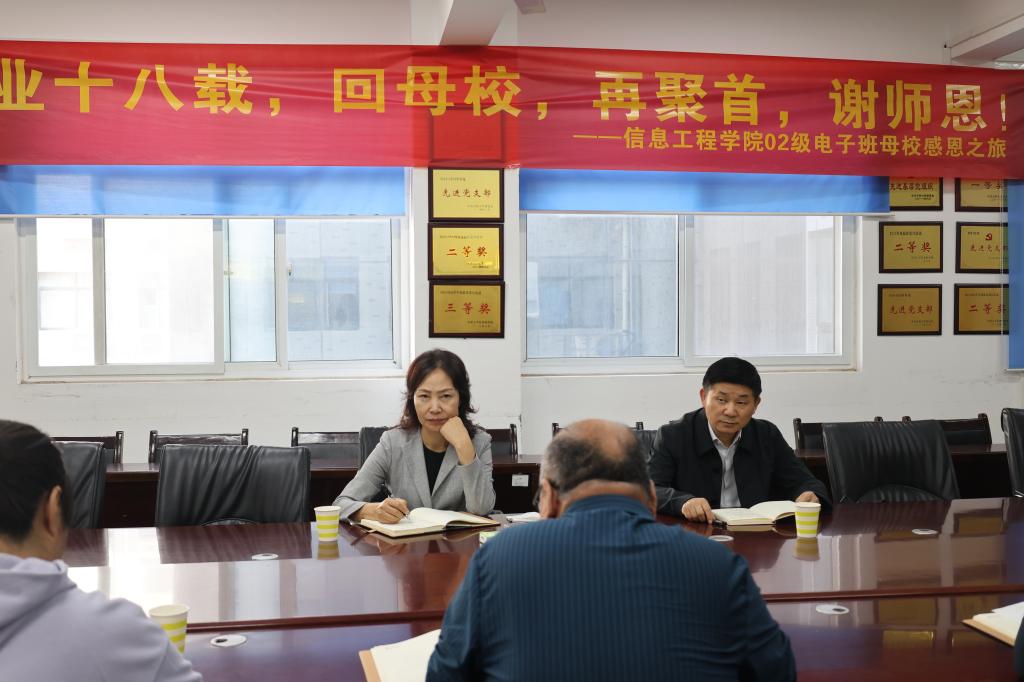 本站讯 10月31日上午,校党委书记谭贞、校长王德如到信息工程学院进行实地考察和调研指导,党政办主任陈岩和教务处处长杨桦等陪同,学院领导班子全体成员参加了调研座谈会。