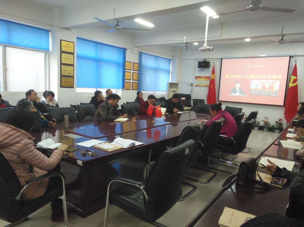 本站讯 11月21日下午,信息工程学院在学院会议室集中学习党的十九届四中全会精神,会议由党总支书记袁震组织,全体教师参加了会议,会议上学习了《党的十九届中央委员会<决定>》的内容。
