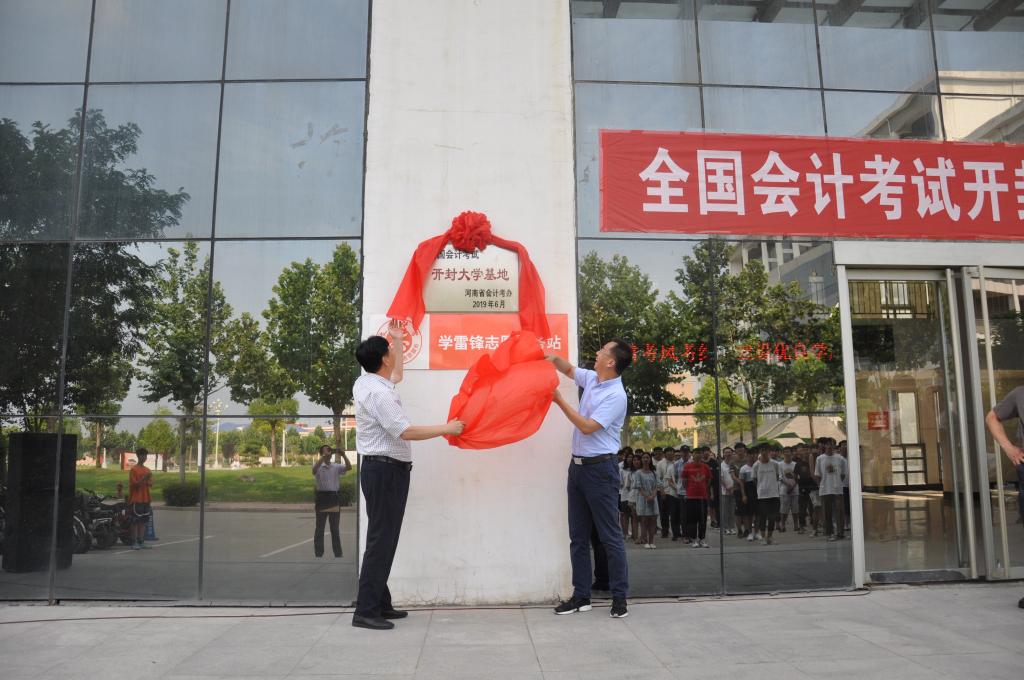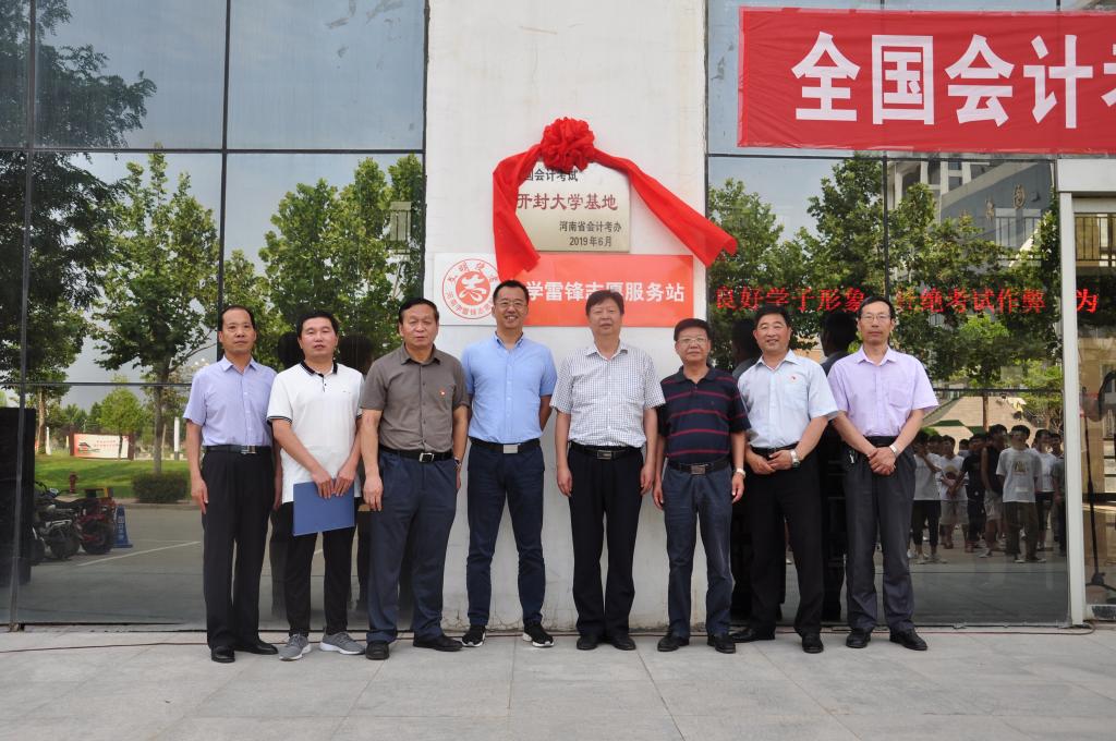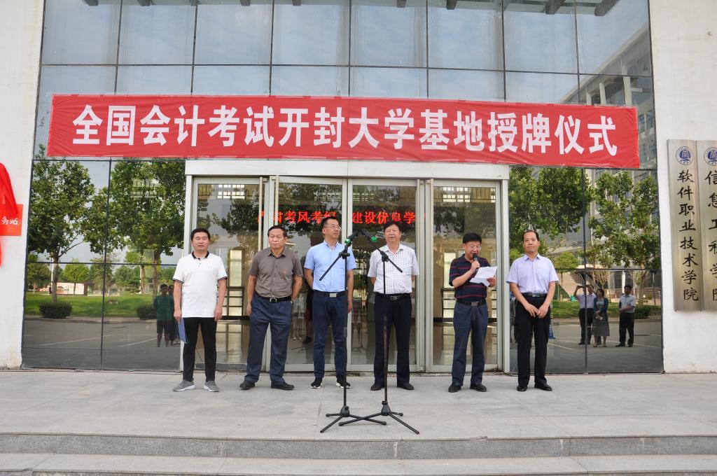 本站讯 6月25日,“全国会计考试bat365在线官方网站基地”揭牌仪式在我校3#楼前举行,河南省财政厅会计处副处长陈东、会计科科长李泽朝,开封市人大常委会财政经济工作委员会副主任(原财政局副局长)孙国强,开封市财政局会计科科长刘胜利,校长宋志敏,副校长万是明,党政办公室和信息工程学院相关负责人参加了活动。仪式由副校长万是明主持。