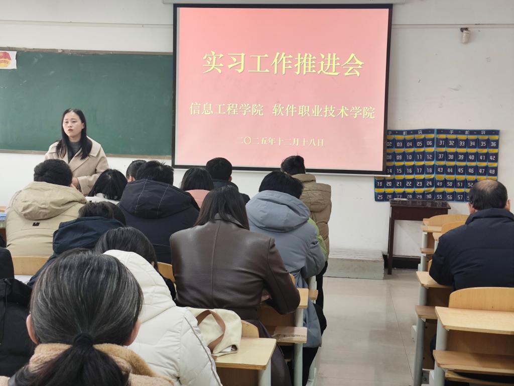 本站讯 为扎实做好2026届毕业生岗位实习工作,提升学生实践能力与就业竞争力,1218日,信息工程学院召开专题推进会,学院领导班子、教研室主任全体指导教师参会