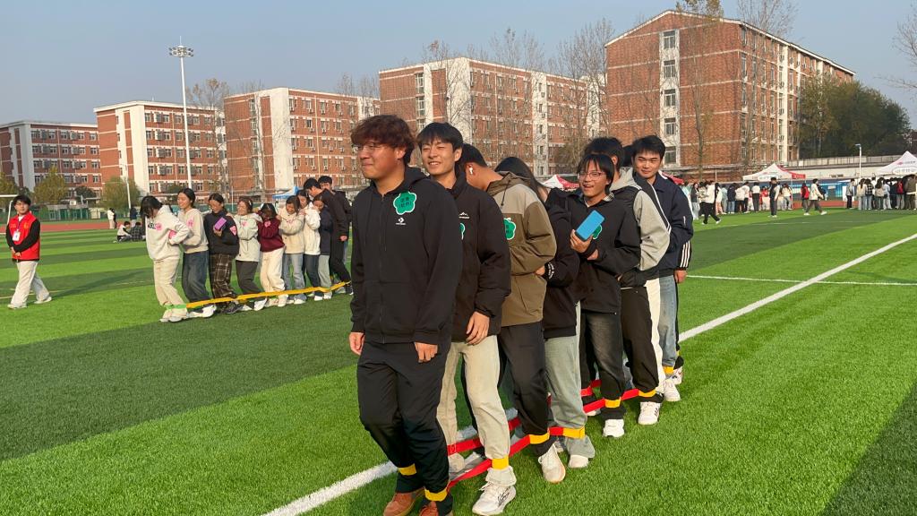开幕式上,信息工程学院方阵在院牌引领下,师生统一、队列整齐地步入会场,成为一道亮丽的风景线。在随后激烈的团队协作竞技中,学院师生全力以赴。“鸿运当头”项目里,队员们默契托举大球,步伐协调一致;“陆地同心舟”比赛中,十人一组的学子们绑腿前行,高呼口号,同步完成挑战,充分彰显了强大的团队凝聚力。