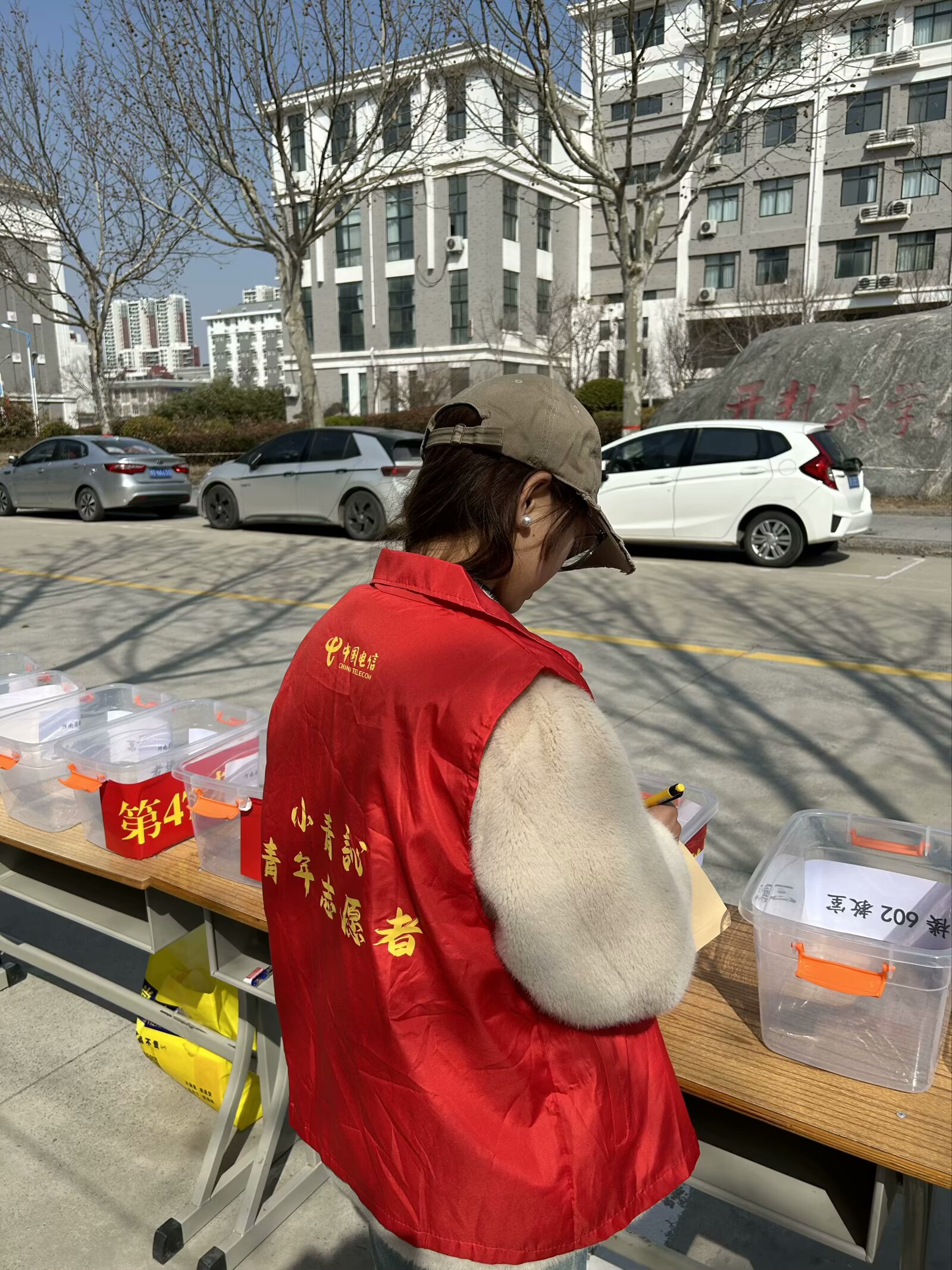 在学校承担的教师资格证考试、成人高考等考务志愿服务中,她细致负责,与同伴协力完成粘贴考生照片、整理考场物资、清点考试设备,确保每个环节井然有序。考试期间,她耐心引导考生存放物品、配合老师完成收发核对,全程高效无误,为考试顺利进行提供了有力保障。