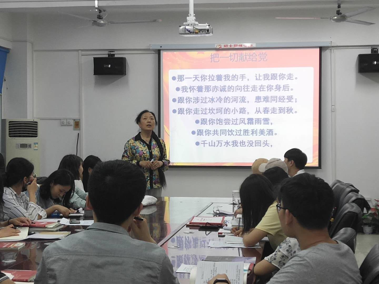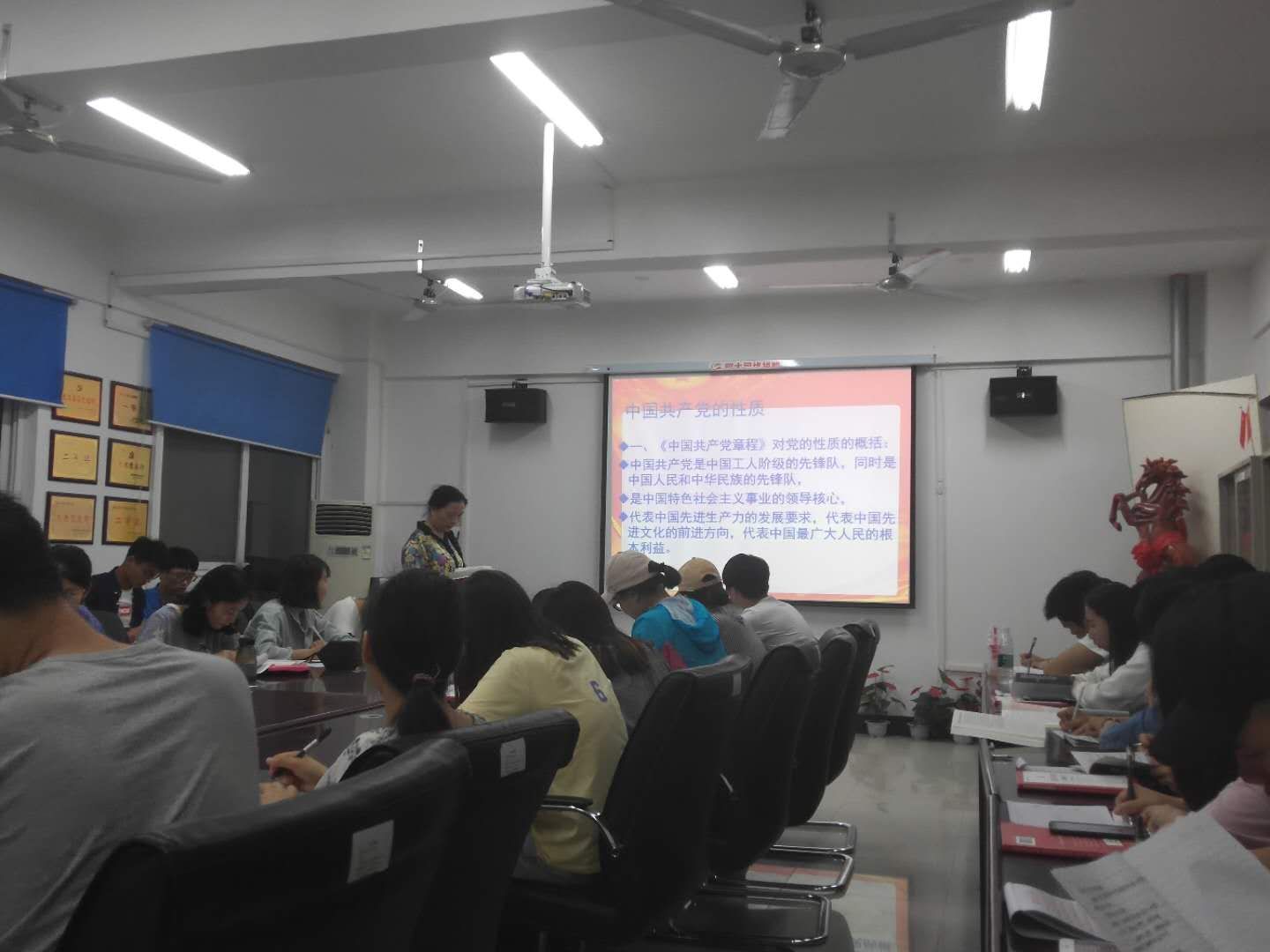 本站讯 5月9日晚七点,我院邀请思想政治理论教研部张兰玲老师为第8期党员发展对象培训班上党课,她所所讲述的党课主题是党的信仰和宗旨。