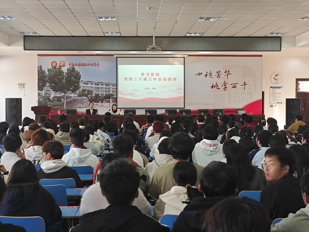 站讯 为深入学习贯彻党的二十届三中全会精神,引导学院师生深刻领会全会的重大意义和重要部署,11月7日下午,信息工程学院、软件职业技术学院于土木建筑工程学院六楼会议厅组织召开学习贯彻党的二十届三中全会精神宣讲会。我校马克思主义学院副院长、副教授朱淼进行宣讲报告。学院教师及学生党员代表共计330余人参加报告会。