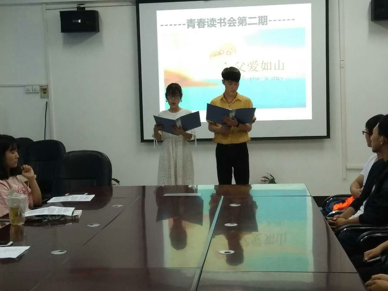 本站讯 6月5日下午,信息工程学院“青春读书会第二期主题活动——父爱如山”在院会议室举行,活动由策划团队学生代表曹京月主持,大一、大二各班热爱读书的同学自发报名参加。