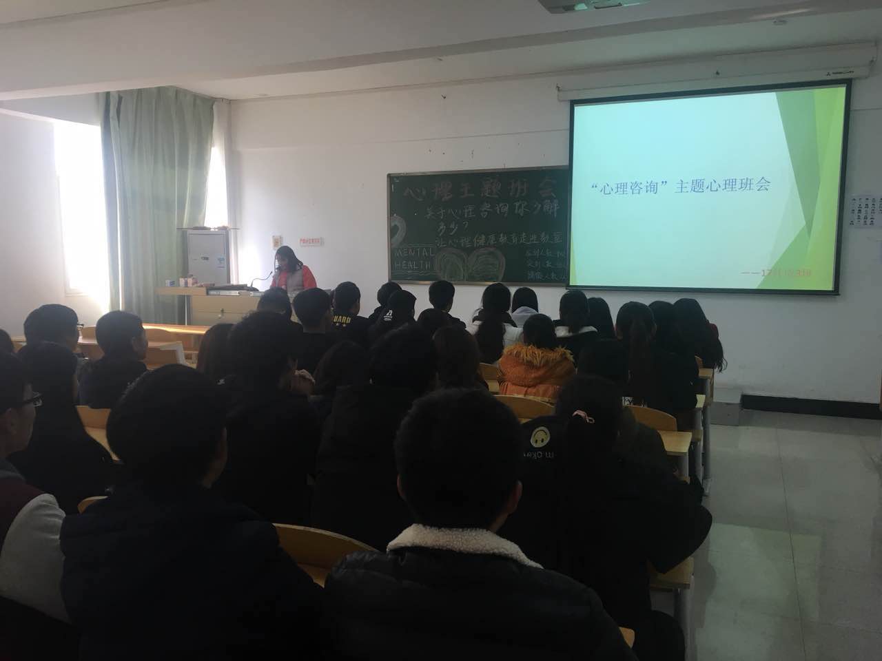 “心理咨询”主题班会是为了宣传心理健康知识、促进同学们身心健康发展而举行的一次活动。在此次班会上,各班心理委员通过PPT、视频、歌曲、故事、案例、心理短剧、游戏等多种形式宣传了心理健康知识,大一新生针对自己入学以来的心理状况踊跃发言,总结了新入校遇到问题和困难时的解决办法,明确了心理健康、心理咨询的重要性。