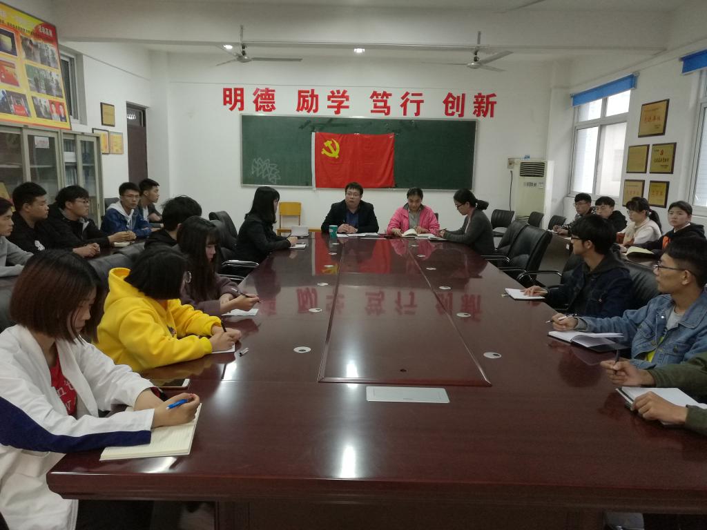本站讯 为了培训新一批主要学生干部们在工作中所必须的能力和素质,激发他们的兴趣和激情,让他们更好地参加到学生会的工作中来。2018年4月12日下午,信息工程学院学院会议室312会议室举办学生干部培训会召开,学院党总支副书记韦志鹏主持会议,学院所有辅导员、团学联主要学生干部、各班班长参加了培训会。