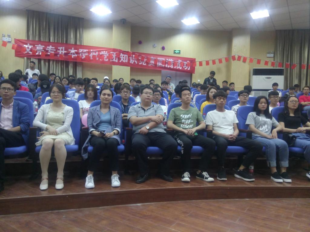 本站讯 5月3日晚上,信息工程学院在5号楼1楼报告厅举办以“学习党的知识,了解党的性质,永远跟党走——点燃红色青春,实现青年梦想”为主题的党团知识竞赛活动。信息工程学院党总支副书记韦志鹏和学院一百多名学生观看了比赛。