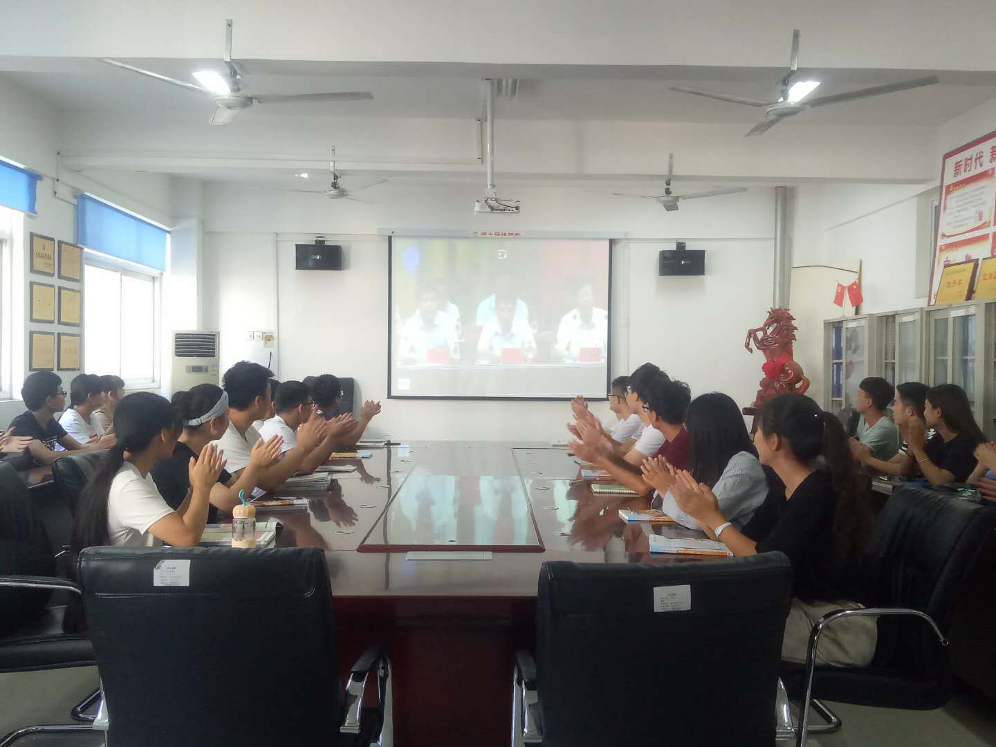 直播中,大家安静严肃地倾听领导讲话,不时为精彩的报告内容送去阵阵掌声。