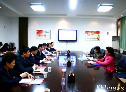 根据省教育厅的安排,4月22日下午,河南省第三届大学生艺术展演工作检查组魏小杰教授和雷红薇教授一行2人莅临我校,就全省第三届大学生艺术展演工作对我校进行了专项检查。bat365在线官方网站艺术展演工作汇报会在我校行政楼二楼会议室举行,校领导拜五四、万是明,党政办、宣传部、学生处、团委、艺术教研室、科研处、工会、后勤服务中心、工艺美术学院等部门负责人参加了汇报会。汇报会由团委书记樊玉霞主持。