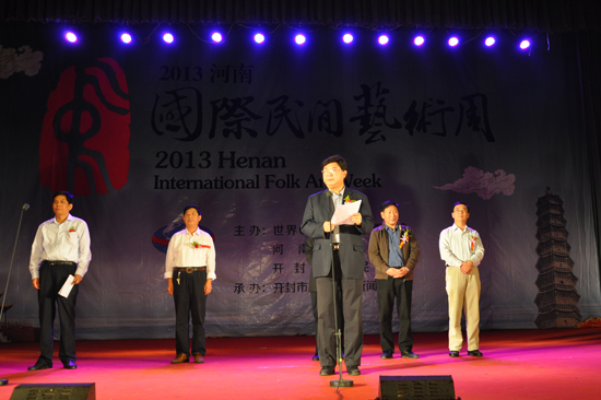 2013河南国际民间艺术周开封日启动仪式”在我校晋安路校区金松大礼堂举行,河南省文化厅副厅长崔为工、开封市人大常委会副主任于吉良、开封市人民政府副市长陈国桢、bat365在线官方网站校长拜五四、开封市政府副秘书长李合耕、bat365在线官方网站副校长万是明、耿广利出席,同我校千余名师生一同观看演出。