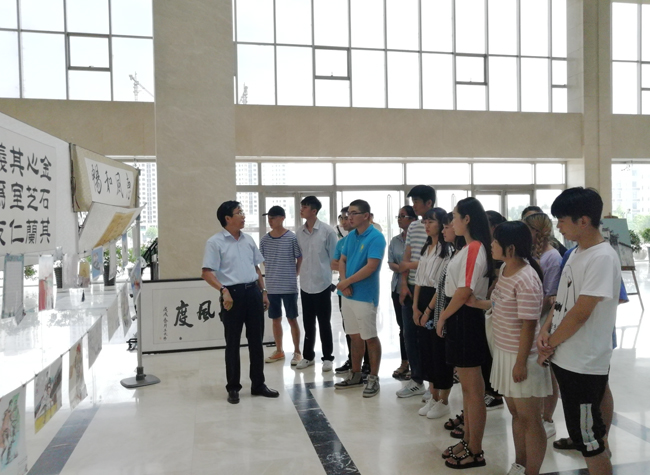 本站讯 为丰富校园文化生活,展示我校第十六届体育文化节暨2018年春季田径运动会文化作品成果,我校于6月份在图书馆二楼大厅举办第十六届体育文化节暨2018年春季田径运动会文化类作品展览活动。6月20日下午,校工会主席成芳及学生工作委员会全体成员现场参观了展览;6月21日下午,中国书法家协会会员毛成利老师现场为获奖选手点评作品,并为获奖选手颁发了奖品和荣誉证书。
