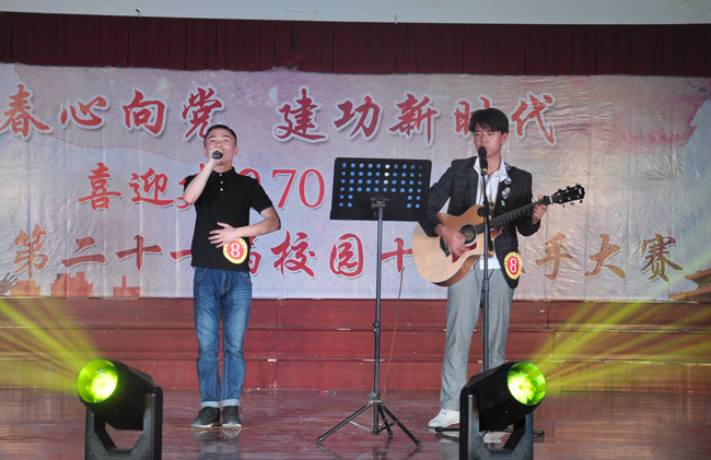 选手们在舞台上尽情展示声乐、乐器、戏曲、相声表演等才艺,经过三轮激烈角逐,旅游学院“两点半”组合摘得决赛桂冠;艺术设计学院岳千惠同学和旅游学院梁嘉宇同学分别获得亚军和季军;电子电气工程学院的张宇同学、财政经济学院的韩笑阳同学、机械与汽车工程学院的冯小强同学、艺术设计学院的叁陆乐队和宋梦薇获得优秀奖;国际教育学院的王颖同学、艺术设计学院的郭宏利同学获得最佳台风奖;财政经济学院的范家佳同学和医学部的牛娅涵同学获得最佳人气奖。