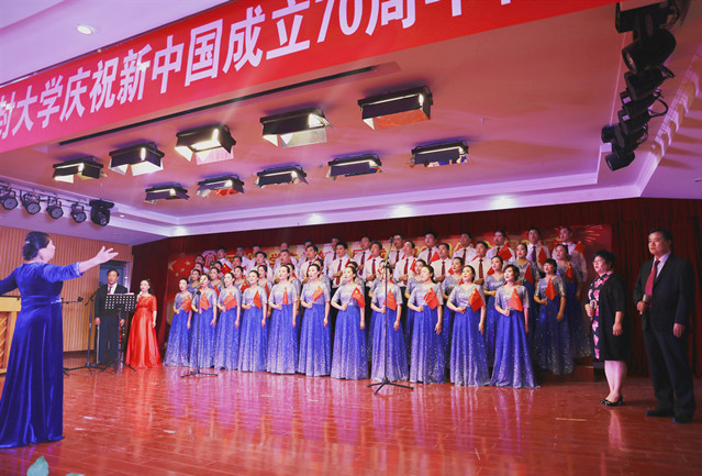 校党委书记陈灿致辞。陈书记首先代表学校领导班子向莅临本次合唱比赛的领导和评委表示衷心的欢迎,向辛勤付出、积极备战的教工表示诚挚的慰问!陈书记在讲话中回顾了新中国成立70年以来的光辉历程和伟大成就;总结了bat365在线官方网站办学近四十年来的艰辛历程和取得的诸多殊荣。最后,陈书记希望同志们在全校上下深入开展“不忘初心、牢记使命”主题教育之际,放开歌喉,以饱满的热情、嘹亮的歌声抒发爱国情怀,唱响时代的主旋律,展示开大人的真风采。把个人的“小声音”“小目标”与创造祖国、学校更加美好未来的“大合唱”“大目标”交织交融,传递好声音,凝聚正能量,让主旋律高扬校园,振奋精神,激励全校教工奋发担当、砥砺前行。同时要求,在举国上下欢度国庆佳节之际,全校各部门、各单位和全体教职员工要坚守各自岗位,牢记工作职责,切实保障学校的欢乐祥和、安全稳定。以实际行动向新中国成立70周年献礼,并预祝本次合唱比赛圆满成功。