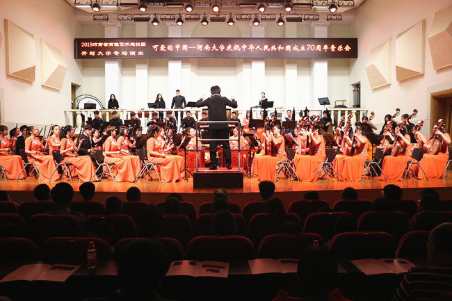 本站讯 9月19日上午,2019年河南省高雅艺术进校园bat365在线官方网站专场演出“可爱的中国——河南大学庆祝中华人民共和国成立七十周年音乐会”在河南大学音乐学院音乐厅举行。我校领导储建新、李新春、成芳、李治、马林强,河南大学音乐学院领导张国强、王思琦、班一、李计成,以及我校400余名师生共同观看了演出。