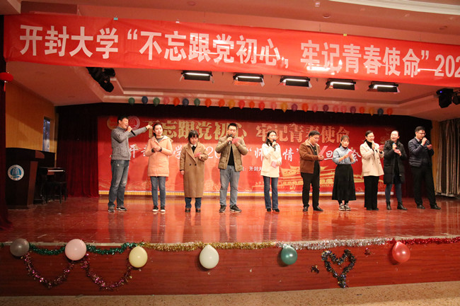 晚会在校学生会合唱团演唱的《强国一代有我在》中拉开帷幕,在古筝的伴奏下,书法社的同学挥毫泼墨写下了“不忘初心、牢记使命”为在场师生送上新春祝福,之后同学们深情的诗朗诵《情系开大40年》、优美的民族舞蹈《茉莉花》、话剧《芳华》等各类节目轮番上映,异彩纷呈,气氛热烈,洋溢着青春活力。老师们登台合唱的《一生有你》将晚会推向高潮。为增加晚会趣味性,出席领导在三轮抽奖环节中与学生互动,给晚会增添了喜庆气氛。晚会在合唱《我和我的祖国》声中落下帷幕。