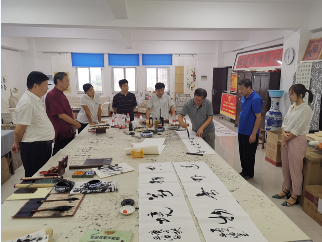 本站讯 9月16日下午,开封市文联秘书长郭张开,开封市书法家协会副主席郭思源,中国书法家协会会员、甲骨文钧瓷龟甲片创始人傅伟华,中国书法家协会会员、中国文艺家艺术研究院院士崔向前一行莅校调研指导文化建设工作。我校校长宋志敏,校工会、艺术设计学院相关负责人及工作人员陪同调研。