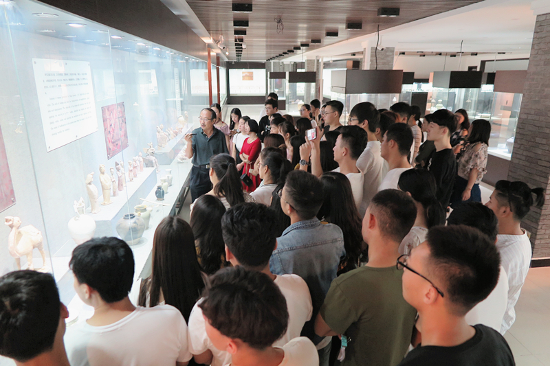 艺术设计学院院长魏跃进教授在课堂上进行了情景教学,让学生们深入了解了博物馆馆藏文物的文化与历史,针对设计的需要,讲授了藏品的器形、图案、色彩和设计原理等内容。艺术设计学院以大观博物馆丰厚的馆藏文物为教学平台,为学生们的设计创作提供源源不断的设计灵感与设计创意。同时结合开封市政府提出的“文化+”行动计划,逐步增强对大学生传统文化的教育与传承。该项目教学以“大观博物馆衍生品的设计与开发策略”为目的,在教学中将传统的文化与现代的设计表现形式相融合,在此过程中不断丰富学生自身的专业素养和实践能力。(作者:李元春)